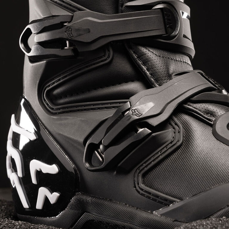 Alle funktioner som i de populære Comp støvler, men med forbedret trækkraft på ydersålen, der giver et ekstraordinært greb under varierende offroad-betingelser. Comp X støvlerne har fået nyt design for bedre holdbarhed, som giver øjeblikkelig komfort og en enestående pasform. Comp X støvlerne har alle de essentielle egenskaber, som en motocross-støvle besidder, og er en offroad-støvle som enhver rytter kan forholde sig til, uanset om de er begyndere eller på pro-niveau. Hvad angår komfort og robusthed under turen giver overdelen i kunstlæder en uovertruffen komfort, pasform og slidstyrke, mens netpanelerne sørger for ekstra komfort og åndbarhed. Disse støvler giver støtte og beskyttelse både på banen og offroad, fordi TPU-skinnebenspladen, tåværn, hælkap, ankel- og lægbeskytter samt beskyttelsesskærme er designet til at give dig den nødvendige dækning, du har behov for. Det nye justerbare 4-spænders lukkesystem giver en sikker og tætsiddende pasform, som du kan stole på. Derudover giver indersålen af kompositmateriale stabilitet og støtte fra hæl til tå og fra side til side på fodbøjlerne, mens vores eksklusive Fox POSITAC-gummiblanding yder forbedret slidstyrke og enestående greb på ydersålen. Men det bedste af det hele er, at Comp kan gensåles, hvilket forlænger levetiden for disse motocross-støvler med essentiel ydeevne.